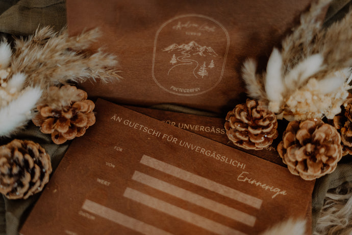 Gutschein-/Einladungs -Karten aus Holz